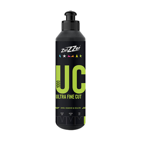 UC 1000 ULTRAFINE CUT SWIRL REMOVER & SEALING - 250 ml Polish that effectively removes swirls and the finest micro scratches, and provides a perfect, deep glossy finish, and has a sealant that provides extremely durable protection. The product is made of the latest generation of micro oxide, which provides a fantastic finished paint result. As protection, it has a ceramic coating that helps to seal pores and protect the paint for several months. Can be used on all hardened paint surfaces. For processing, we recommend the Zvizzer Thermo black pad for best results. You should always shake the bottle before use so that the abrasive is well mixed in the bottle! Apply a sufficient amount of UC 1000 to the polishing pad, spread the product at low speed on the area to be polished - preferably about 40 × 40 cm, and increase the speed to medium speed. Drive with 50% overlap and preferably crosswise and when the products "clean up" you can wipe with a microfiber cloth.