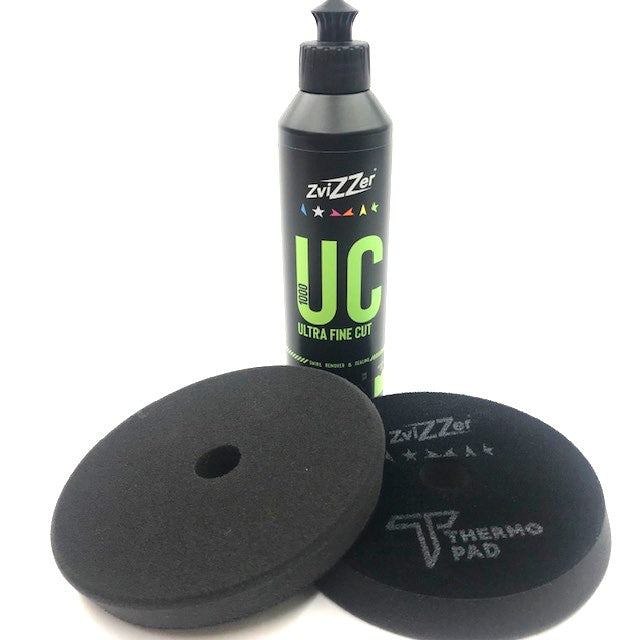 Zvizzer Ultrafine polish 250ml with 2 pcs. Zvizzer Thermo pads 140mm Soft black.