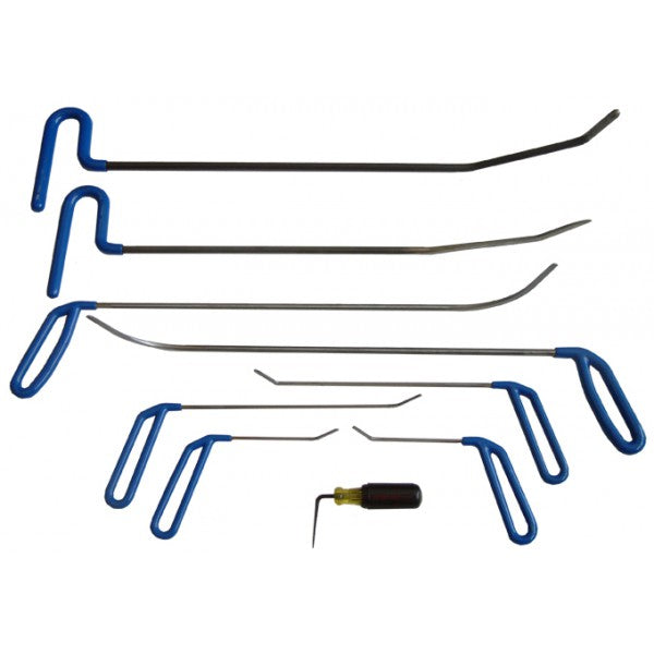 Ett praktiskt set som främst används för parkeringsbucklor Vårt 9-delade start set innehåller 9 grundläggande PDR-stänger och används främst för parkskador.