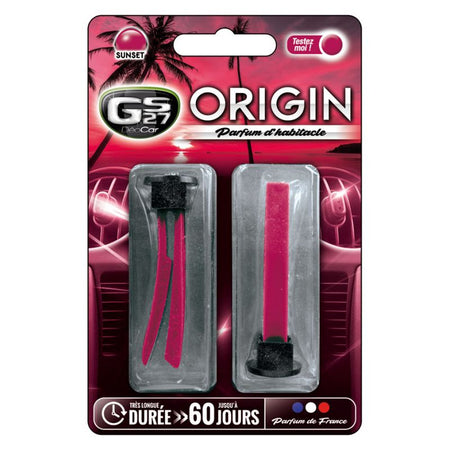DEOCAR ORIGIN - Sunset Luftfräschare för att lägga in blommig och fruktig doft Déocar® Origin är ett praktiskt och diskret doftkoncept för fordonsinredning. Praktiskt, den passar direkt in i fordonets luftventiler. Tack vare ventilationssystemet sprider det sedan parfymen in i fordonet. Den är diskret och smälter in perfekt i instrumentbrädan och respekterar därmed din bils estetik. Déocar® Origin är helt säkert för din bil: tillverkad av 100 % flexibel "soft touch"-plast, den genererar inga repor eller repor på ventilationsfenorna. Déocar® Origin innehåller ingen vätska eller gel, så det lämnar inga märken eller droppar på instrumentbrädan. Sortimentet erbjuder original och franska parfymer av hög kvalitet och mycket lång varaktighet: upp till 60 dagars effektivitet. Upptäck den nya avkopplande doften "Sunset", genomsyrad av delikata toner av ros, vit lilja och röda frukter.