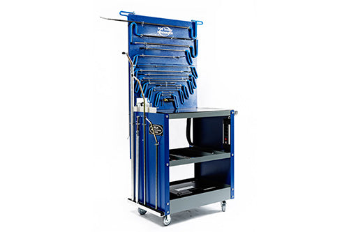 Organiserad förvaring: Praktisk blå vagn säkerställer att alla verktyg finns på ett ställe, med en kontur på baksidan för 25-delars Pro-setet för att hålla allt organiserat.