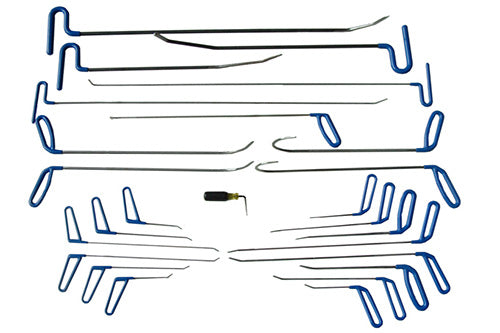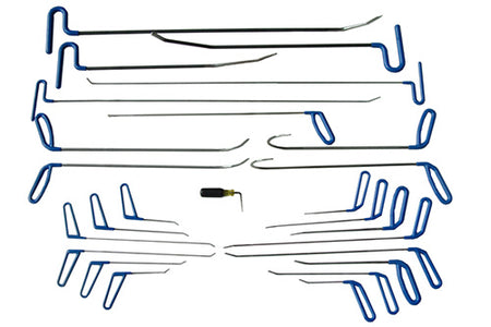 Innehåll: 25-delars Pro Set (8050): En omfattande uppsättning PDR-verktyg för professionell bucklareparation. BEA SPS Full Set (9000): Komplett set för specialiserade bucklareparationsbehov. Limavdragare GP2 (7510): Avancerat limavdragarsystem för effektiv bucklaborttagning. Vagn (8081): Hållbar och praktisk vagn för organiserad verktygsförvaring och mobilitet. 4-stifts elanslutning och förlängningskabel: Säkerställer en snygg och effektiv strömförsörjning.