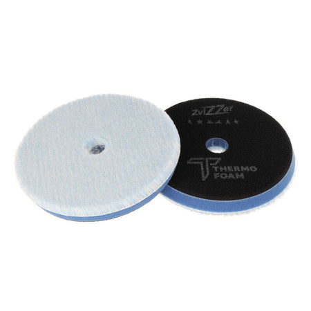 Blå Hybrid polerrondell från ZviZZer PROFESSIONAL THERMO POLISHING SYSTEM-serien för Dual Action-maskiner. Den sticker ut med en genomsnittlig skärkraft bland THERMO HYBRID kuddar. Det fungerar mycket bra för att ta bort måttliga repor på lackytan. Den var gjord av en kombination av högkvalitativ merinoull och syntetfibrer med en längd på 5 mm. Hela setet placerades på en speciell materialdistans och den innovativa THERMO BLUE svampen, som reglerar skärkraften på dynorna. Dynan är mycket resistent mot höga temperaturer, mjuknar inte och förlorar inte sina egenskaper under drift. Fiber och skum av utmärkt kvalitet ger utmärkta skäregenskaper och en lättbearbetad yta. Den fungerar bra för att ta bort repor från skadade ytor.